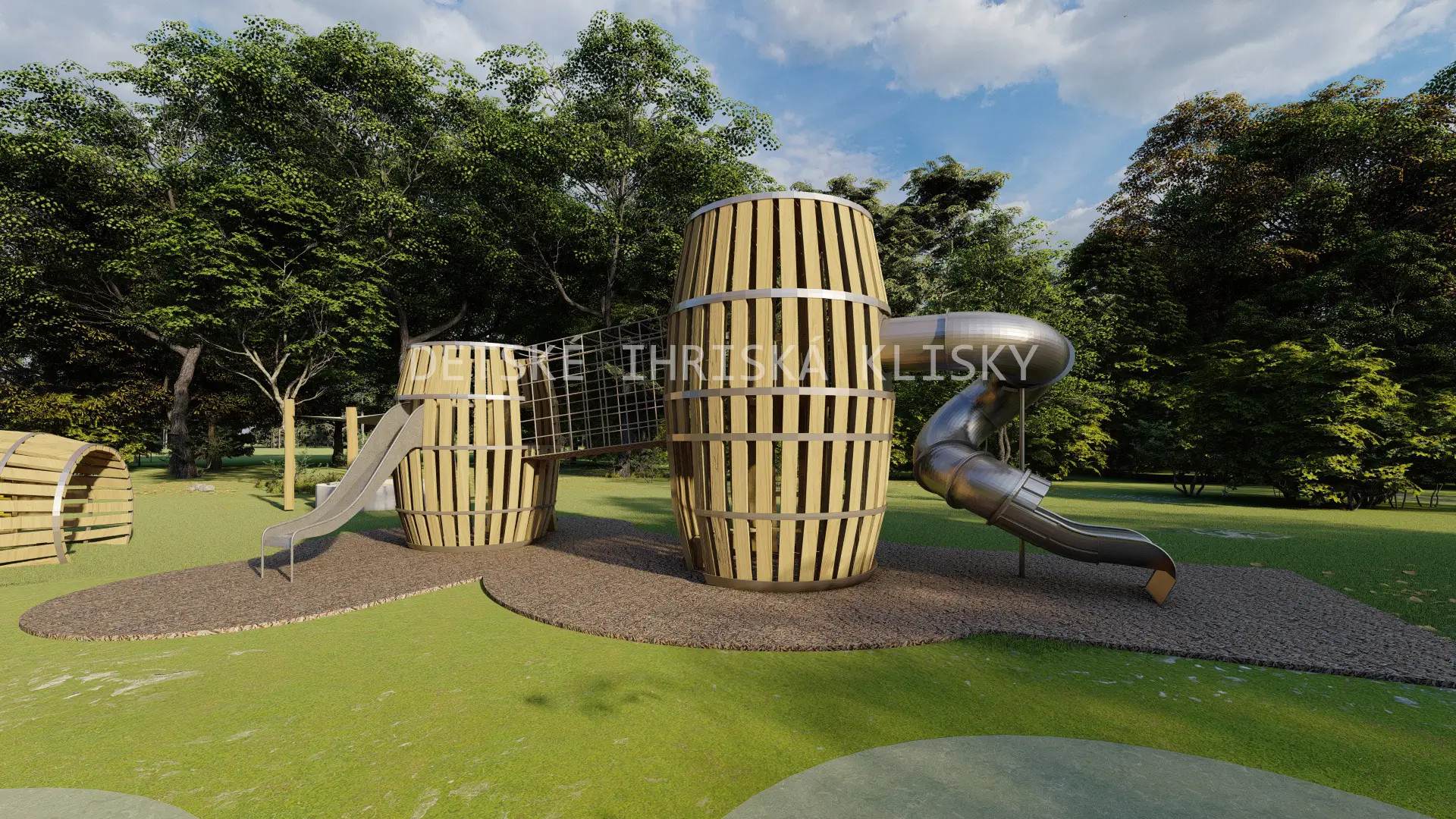 Zostava v sebe nesie príbeh vína v hravej podobe. Dominujú jej podesty prepojené mostíkom, ktoré vedú medzi dvoma "sudmi": jeden sud ukrýva tobogán pre odvážnych jazdcov, na druhý vedie lezecká stena s chytmi a z neho sa deti spúšťajú po malej šmykľavke. Tretí sud je navrhnutý ako útulný domček so sedením a priestorom pre hračky.